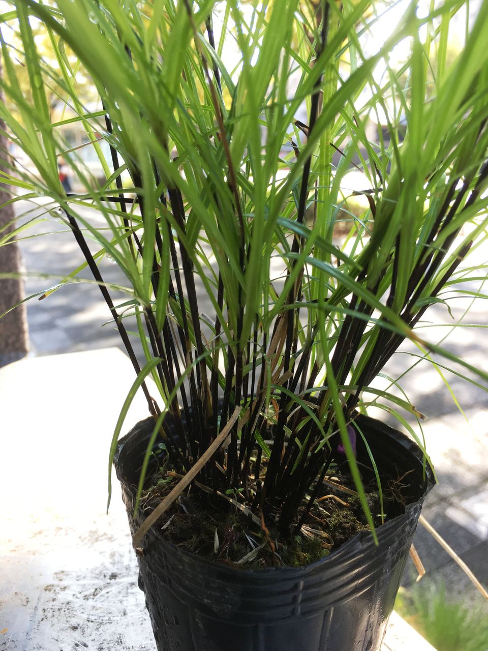 黒軸天竺スゲの特徴は軸(幹)が黒っぽい点です。