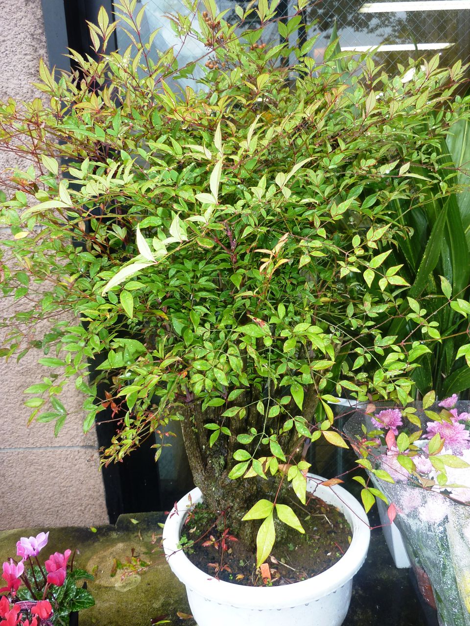 姫南天と間違えるほどよく締まった小葉、幹は年数を経ち方が分かるほど